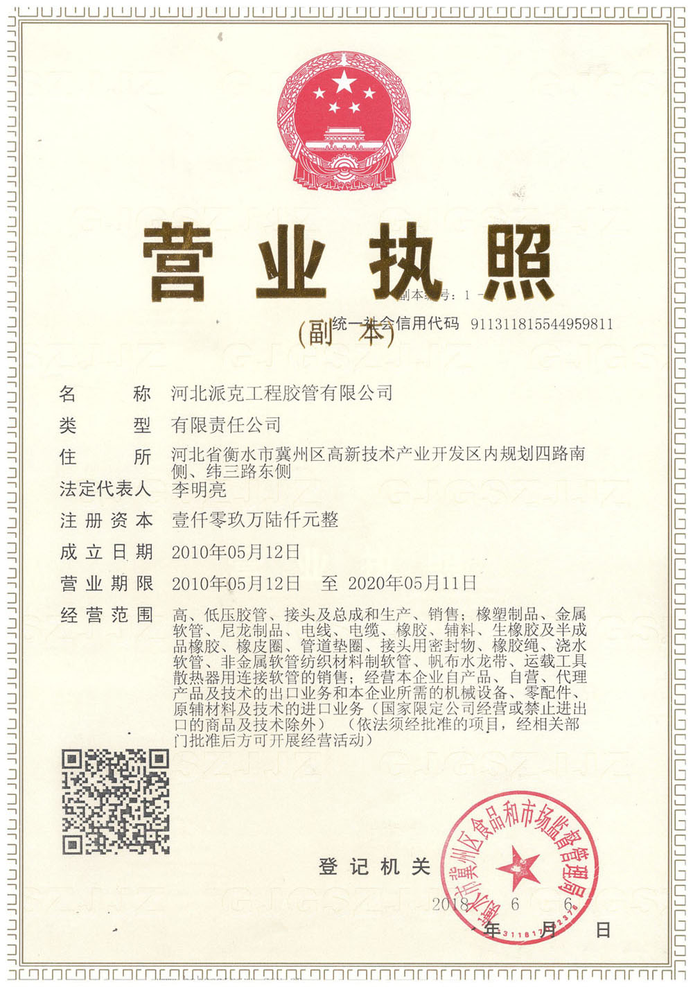 河北派克工程膠管有限公司——資質(zhì)榮譽(yù)